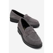 Pline Füme Süet Hakiki Deri Kadın Loafer Ayakkabı Füme