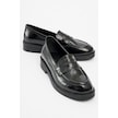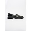 Pline Siyah Rugan Hakiki Deri Kadın Loafer Ayakkabı Siyah Rugan