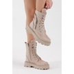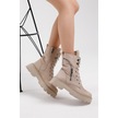 Poli Taban Fermuar Detaylı Rahat Kalıp Bağcıklı Kadın Krem Süet Bot Tber200 Krem Süet