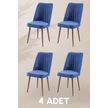 Polo Sandalye - Jerika Mavi - Ahşap Ceviz Ayak 4 Adet - Salon Sandalyesi / Mutfak Sandalyesi Mavi