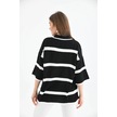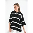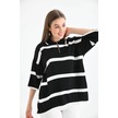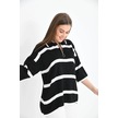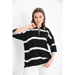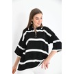 Polo Yaka Fermuarlı Çizgili Salaş Mevsimlik Trko Kazak Siyah