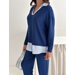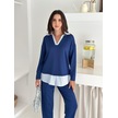Polo Yaka Gömlekl Detay Salaş Balon Pantolunlu Ikılı Takım mavi
