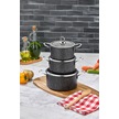 Polochef Hilal Granit 3'lü Mini Tencere Seti 12-14-16 Cm Kapaklı Siyah Siyah