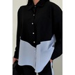 Polyviskon - Poplin Parçalı Gömlek Pantolon Takım - Siyah Siyah