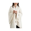 Ponponlu Triko Örme Tv Battaniyesi Koltuk & Omuz Şalı & Diz Battaniyesi 130x170cm - Krem Krem