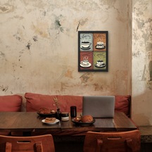 Pop-art Kahve Çeşitleri 4'lü Set Tablo Retro Espresso Latte Mutfak Kafe Duvar Dekoru