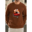 Popeye Baskılı Bisiklet Yaka Sweatshirt Kahverengi