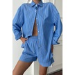 Poplin Çizgili Gömlek - Şort Takım - Mavi Mavi