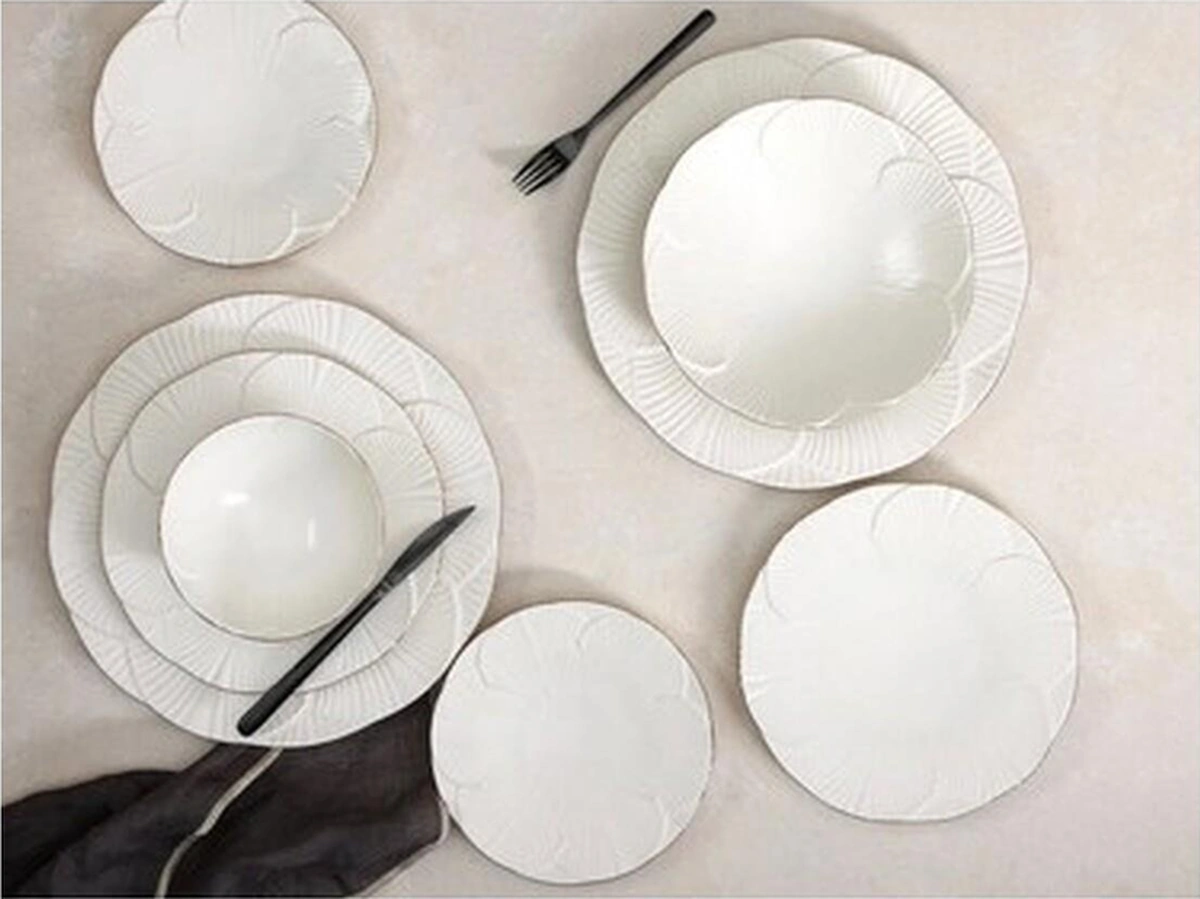 Porland Morocco 18 Parça 6 Kişilik Ikram Ve Kahvaltı Takımı Süt Beyazı