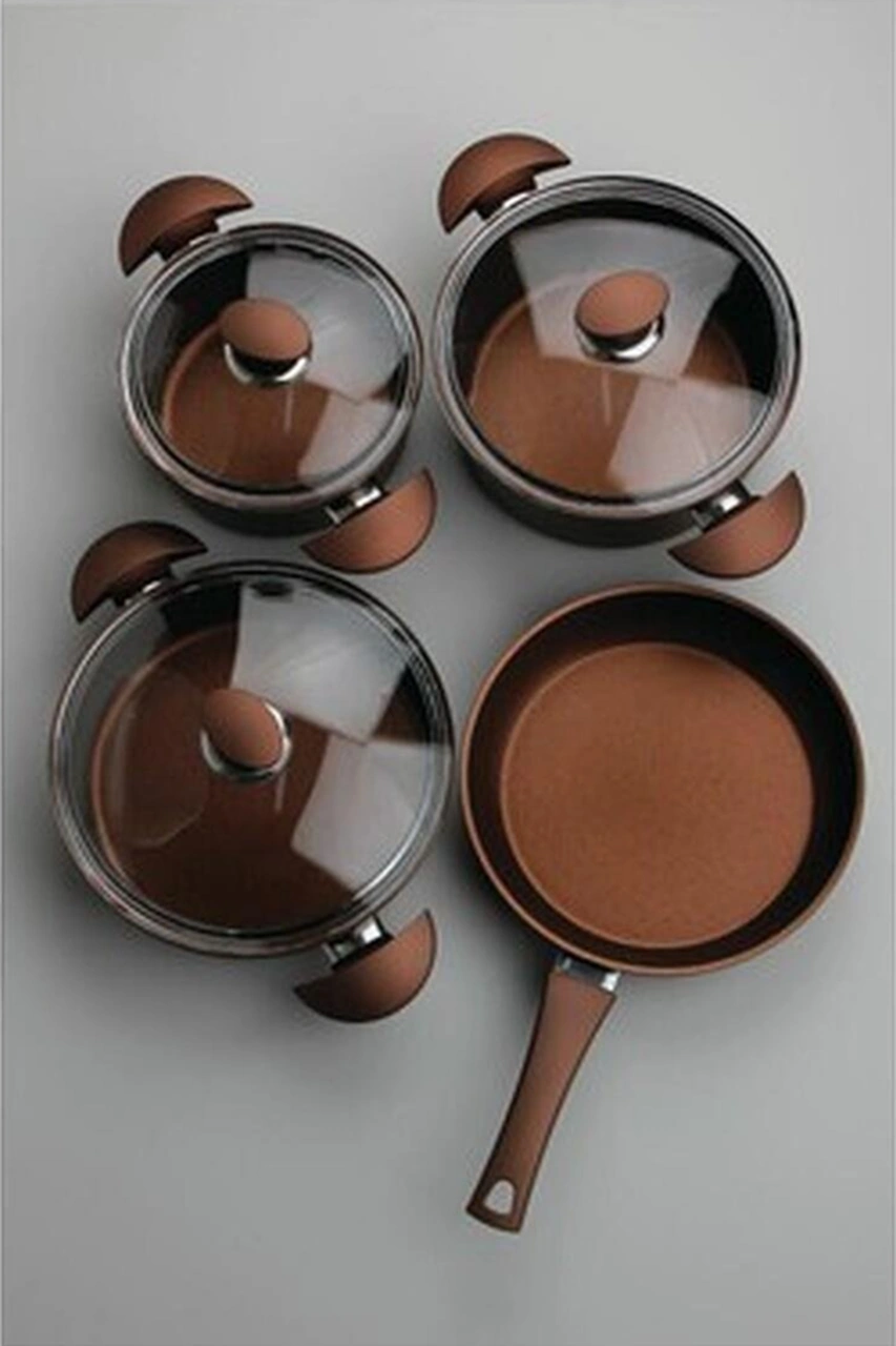 Porland Santino 7 Parça Granit Tencere Seti Bronz Bakır - Siyah