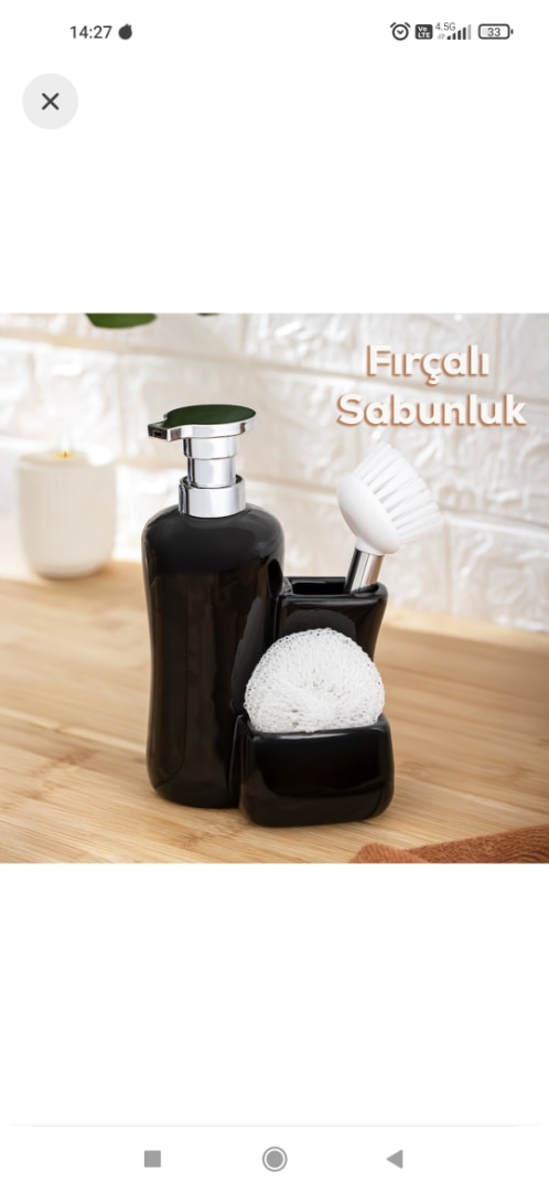 Porsima 268669 Sıvı Sabunluk Fırçalı Süngerlikli Sabunluk Siyah