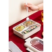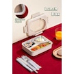 Porsima 3110 Paslanmaz Çelik 3 Bölmeli Vakumlu Yemek Termosu Beslenme Kutusu Taşınabilir Lunch Box Sefer Tası - Krem