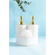 Porsima 3117 Gold Kapaklı Porselen Süngerli 2li Sıvı Sabunluk Beyaz 350+350 Ml Açık Gri - Beyaz