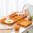 Porsima 709a Kare 3'lü Hasır Tepsi Dekoratif Sunum Servis Tepsisi