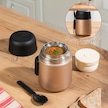 Porsima Paslanmaz Çelik Vakumlu Yemek Termosu Beslenme Kutusu Taşınabilir Lunch Box Sefer Tası Bronz 600 Ml Bronz
