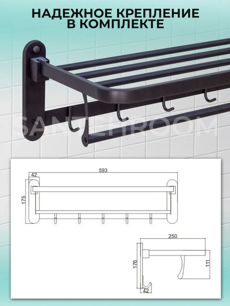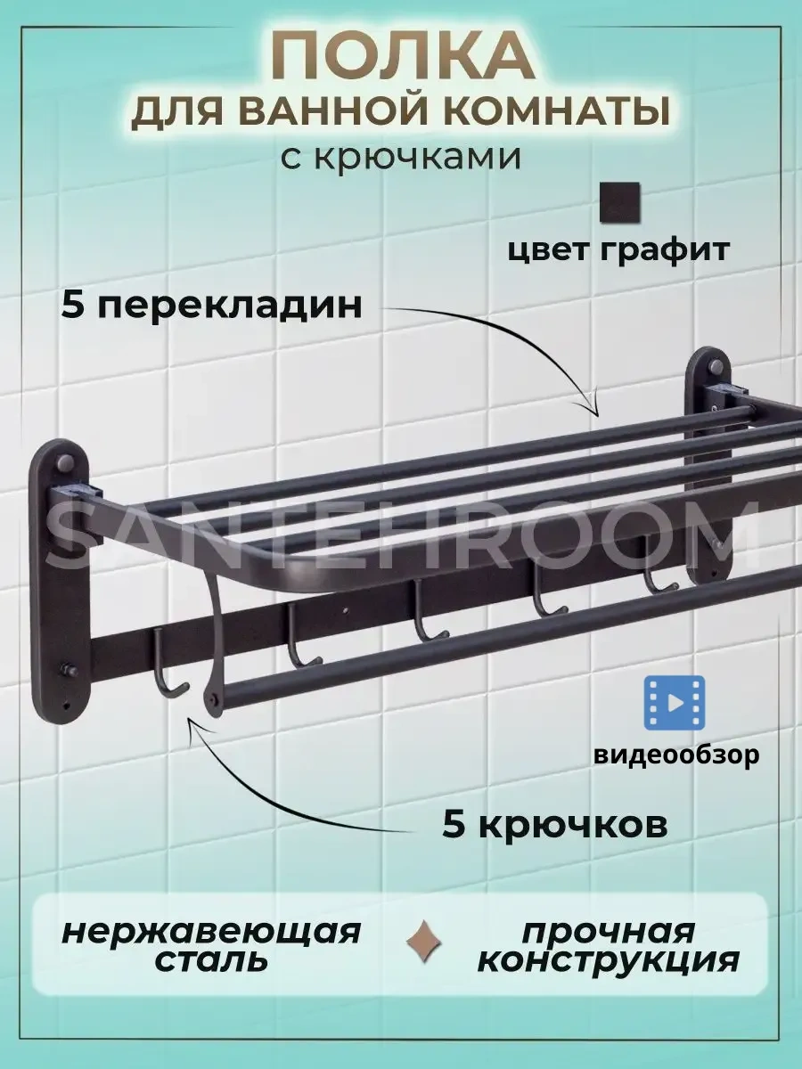 Potato Havlu İçin Duvara Monte Düz Banyo Rafı 99490241 Koyu Gri