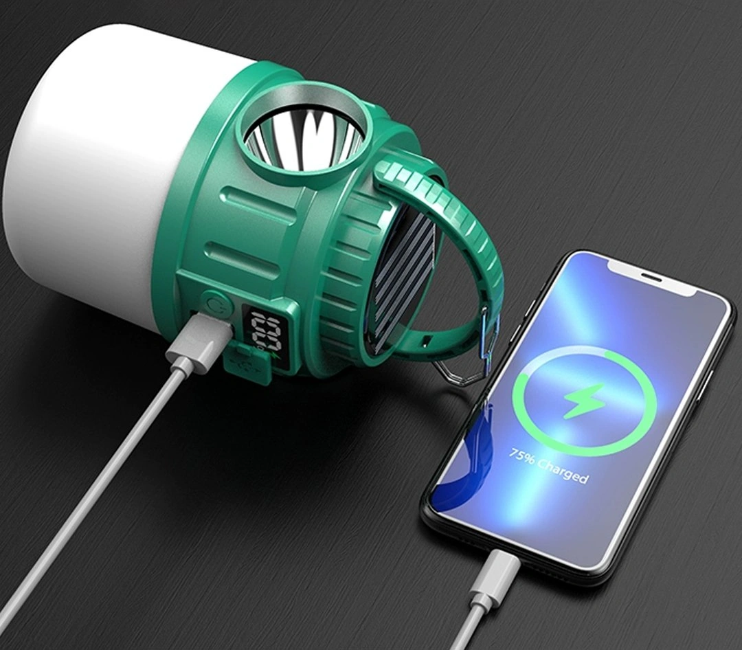 Led Şarjlı Kamp Lambası Işık Dimmer Ayarlı Askılı Portatif Işıldak El Feneri Gece Lamba Siyah Pr20 Siyah