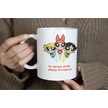 Powerpuff Girls Kız Gücüyle Geldik Dünyayı Titretiyoruz Yazılı Kupa Bardak - Arkadaş Temalı Hediye Beyaz