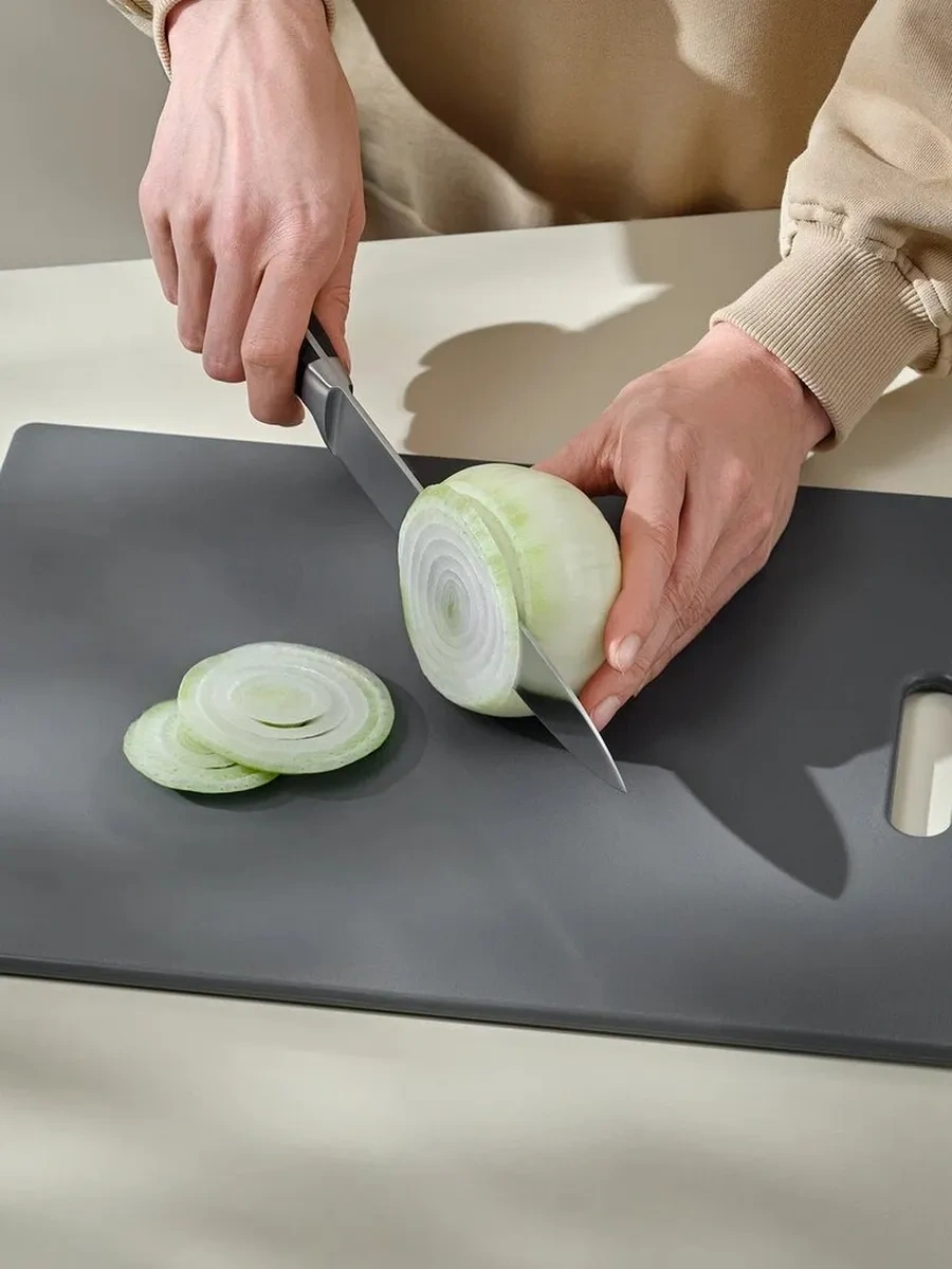 Gri Derin Oluk Tasarımlı Kesme Tahtası Küf Önleyici Kaymaz Çok Fonksiyonlu Damlalıklı Sepet