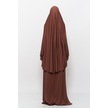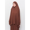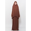 Pratik 2 Parça Pamuklu Yarasa Kollu Başörtülü Tesettür Namaz Elbisesi Çikolata Antrasit