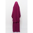 Pratik 2 Parça Pamuklu Yarasa Kollu Başörtülü Tesettür Namaz Elbisesi Koyu Fuşya Antrasit