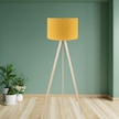 Pratik Ahşap Krem Üç Ayaklı Lambader Sarı Kumaş Silindir Başlık Salon Yatak Odası Köşe Lambası Sarı
