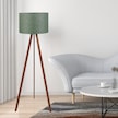 Pratik Ahşap Üç Ayaklı Lambader Yeşil Haki Kumaş Başlık Salon Yatak Odası Köşe Lambası Yeşil