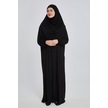 Pratik Başörtülü Rahat Giyilebilen Organik Tek Parça Namaz Elbisesi Siyah