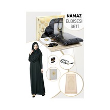 Pratik Başörtülü Tek Parça Namaz Elbisesi Ve Seccade Seti Siyah Siyah