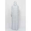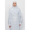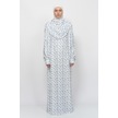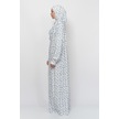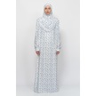 Pratik Tek Parça Çiçek Desenli Kollu Tak Çıkar Başörtülü Likralı Tesettür Namaz Elbisesi 990-0201 Mavi Antrasit