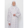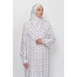 Pratik Tek Parça Çiçek Desenli Kollu Tak Çıkar Başörtülü Likralı Tesettür Namaz Elbisesi 990-0201 Mor Antrasit