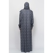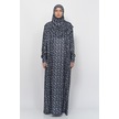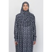 Pratik Tek Parça Çiçek Desenli Kollu Tak Çıkar Başörtülü Likralı Tesettür Namaz Elbisesi 990-0201 Siyah Antrasit