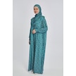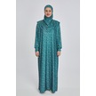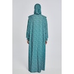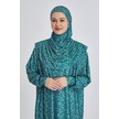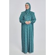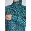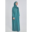 Pratik Tek Parça Çiçek Desenli Namaz Elbisesi Petrol Petrol Mavi