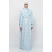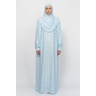 Pratik Tek Parça Güneş Desenli Kollu Tak Çıkar Başörtülü Likralı Tesettür Namaz Elbisesi 990-0302 Mavi Antrasit