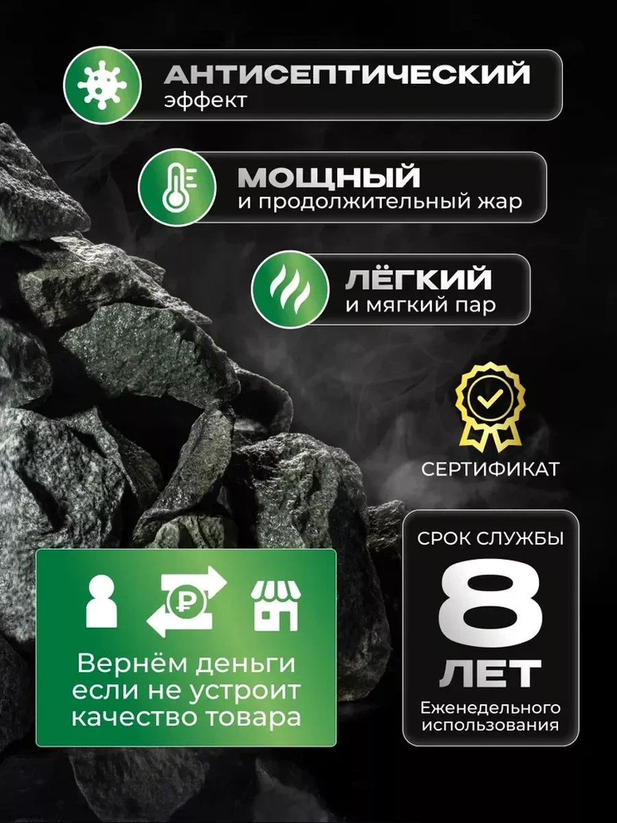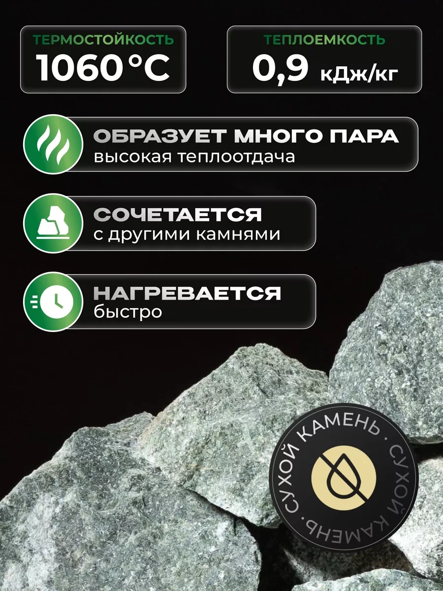 Pravil'nyj Kamen' Yeşil Mermer Kırık Sauna Ve Buhar Odası Taşları 60-90 Mm 10 Kg 180715951