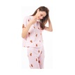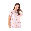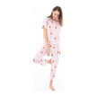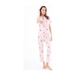 Premium Kadın Pijama Takımı Krem Ayıcık Desenli Yumuşak Dokulu Kısa Kollu Bisiklet Yaka Pembe