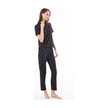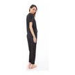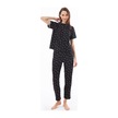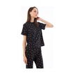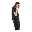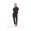 Premium Kadın Pijama Takımı Siyah Kalp Desenli Yumuşak Dokulu Kısa Kollu Bisiklet Yaka Siyah