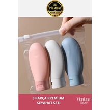 Premium Ürün Özel Çantalı Taşınabilir Tatil Seyahat Plaj Deniz Makyaj Krem Sprey Banyo Seti 3 Parça