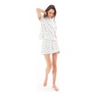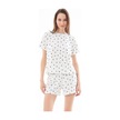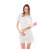 Premium Yazlık Şortlu Kadın Pijama Takımı Krem Kalp Desenli Yumuşak Dokulu Bisiklet Yaka Kısa Kollu Krem
