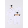 Prenses Desenli Müslin Kız Bebek Hastane Çıkışı Bebek Kıyafetleri Yenidoğan Hastane Çıkış Seti 5 Li Beyaz