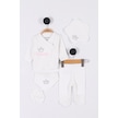 Prenses Desenli Müslin Kız Bebek Hastane Çıkışı Bebek Kıyafetleri Yenidoğan Hastane Çıkış Seti 5 Li Ekru