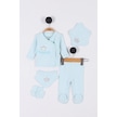 Prenses Desenli Müslin Kız Bebek Hastane Çıkışı Bebek Kıyafetleri Yenidoğan Hastane Çıkış Seti 5 Li Turkuaz