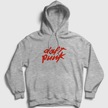 Presmono Unisex Logo Daft Punk Kapüşonlu Sweatshirt Gri Melanj