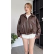 Prifaldi Premium Oversiz Bomber Deri Ceket Kahverengı