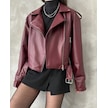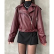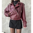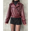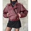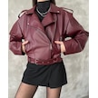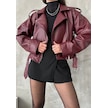 Prifaldi Suni Deri Crop Bıker Ceket Bordo