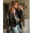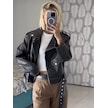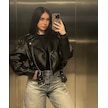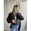 Prifaldi Suni Deri Crop Bıker Ceket Siyah