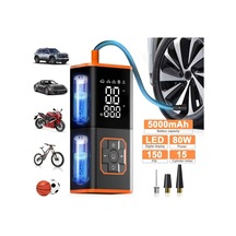 Primepickings Black + Various Accessories Taşınabilir Lastik Şişirme Cihazı 150 Psı Hızlı Şişirme Şarj Edilebilir 2000mah Dijital Basınç Göstergesi Led Işıklar Dayanıklı Kablosuz