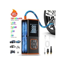 Primepickings Taşınabilir Lastik Şişirme Cihazı 150 Psı Hızlı Şişirme Şarj Edilebilir 2000mah Pil Dijital Basınç Göstergesi Led Işıklar Black Various Accessories Bag