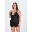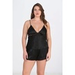 Primoda Siyah Büyük Beden Dantel Detaylı Şort Takımı Siyah
