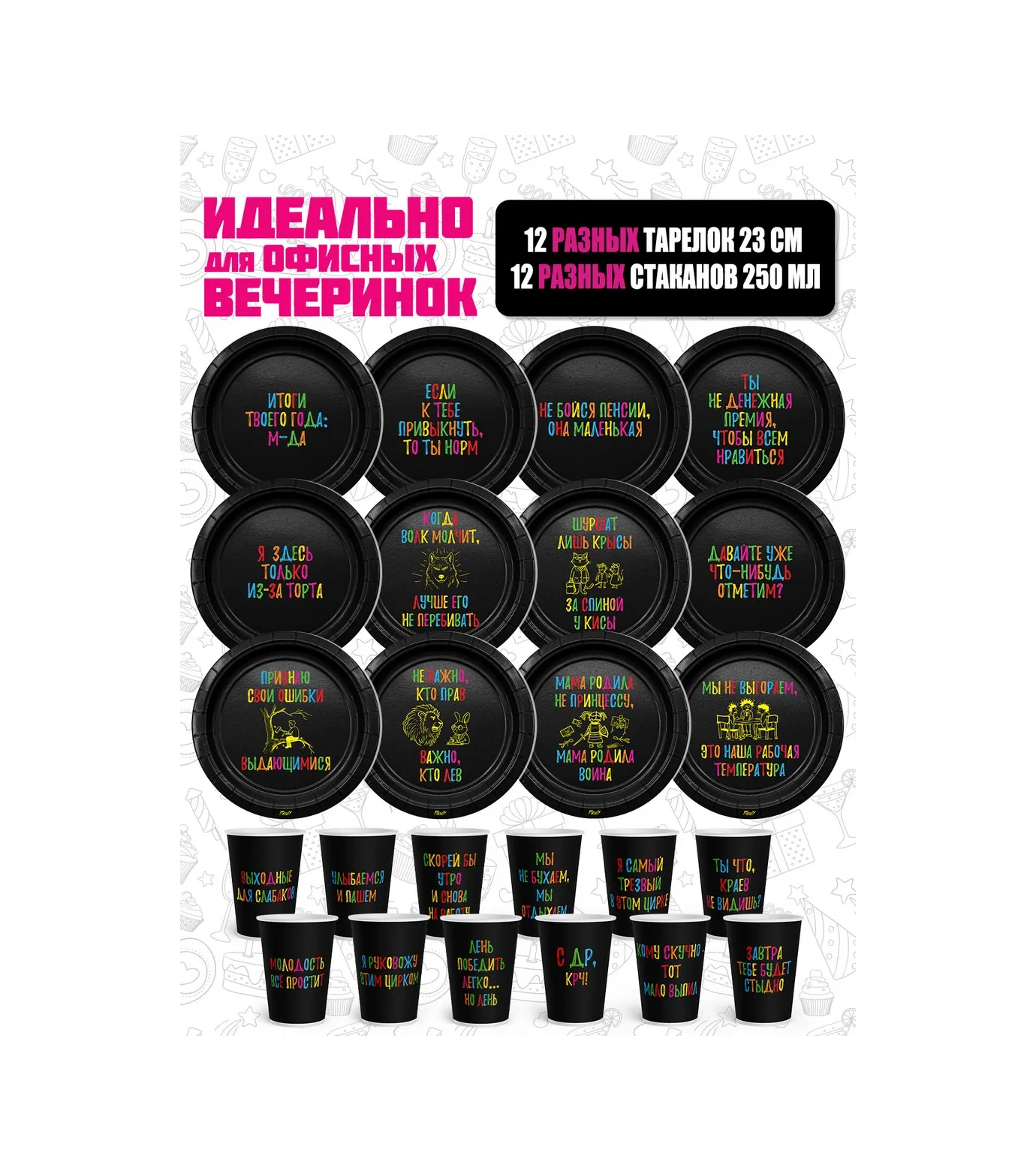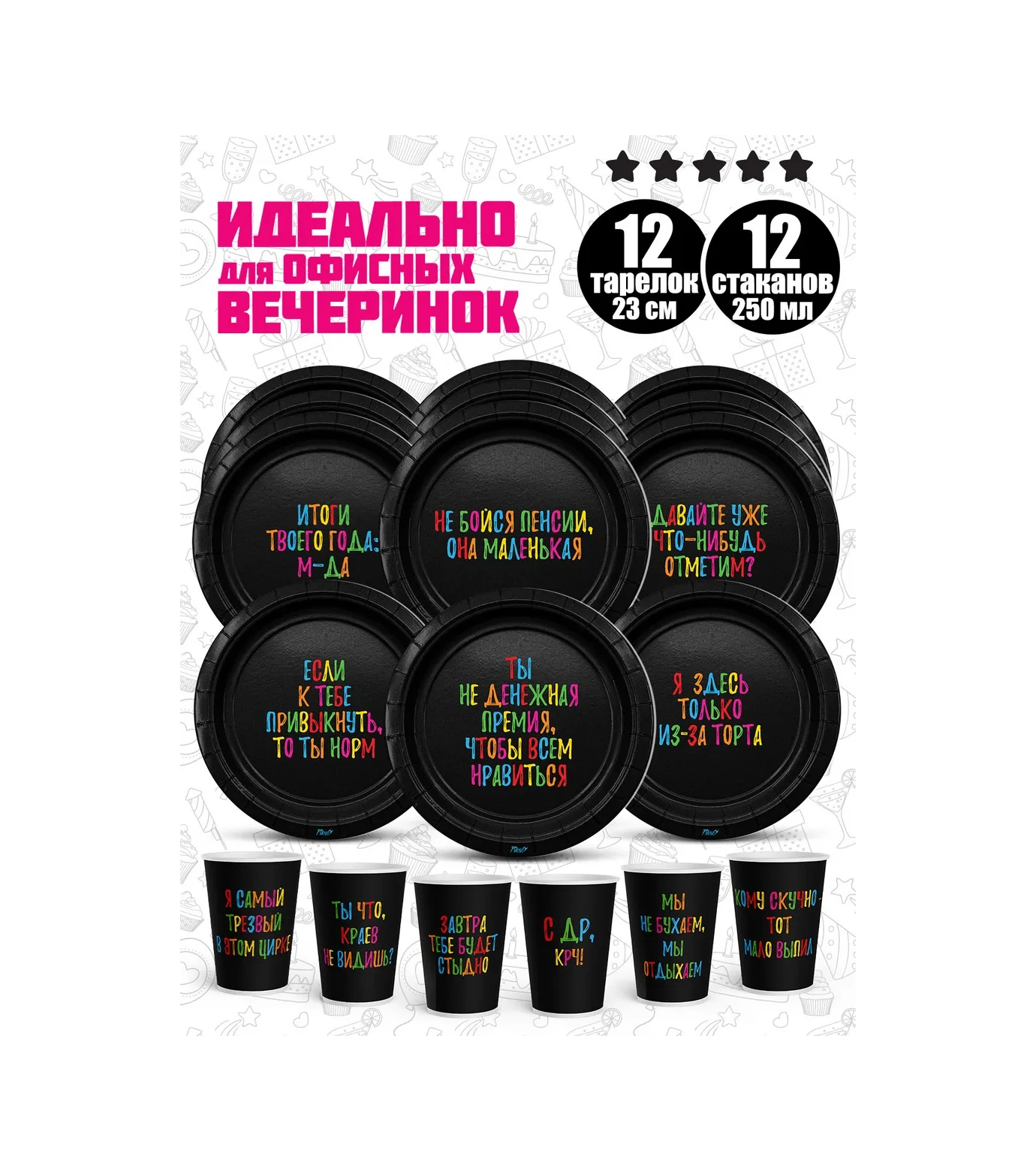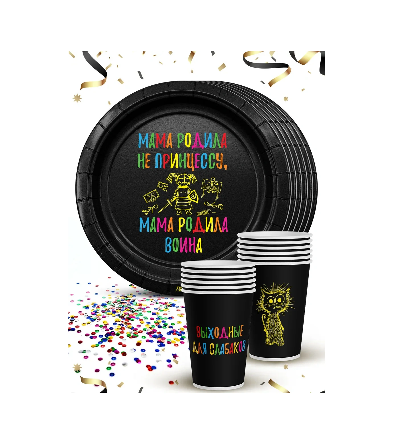Priority. Siyah Üzerinde Yazılar 12 Kişilik Tek Kullanımlık Sofra Takımı 349408017 100 adet